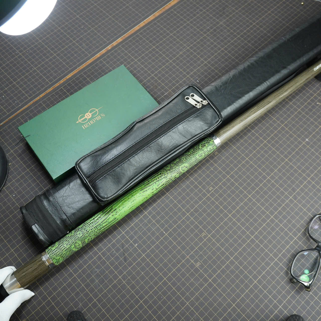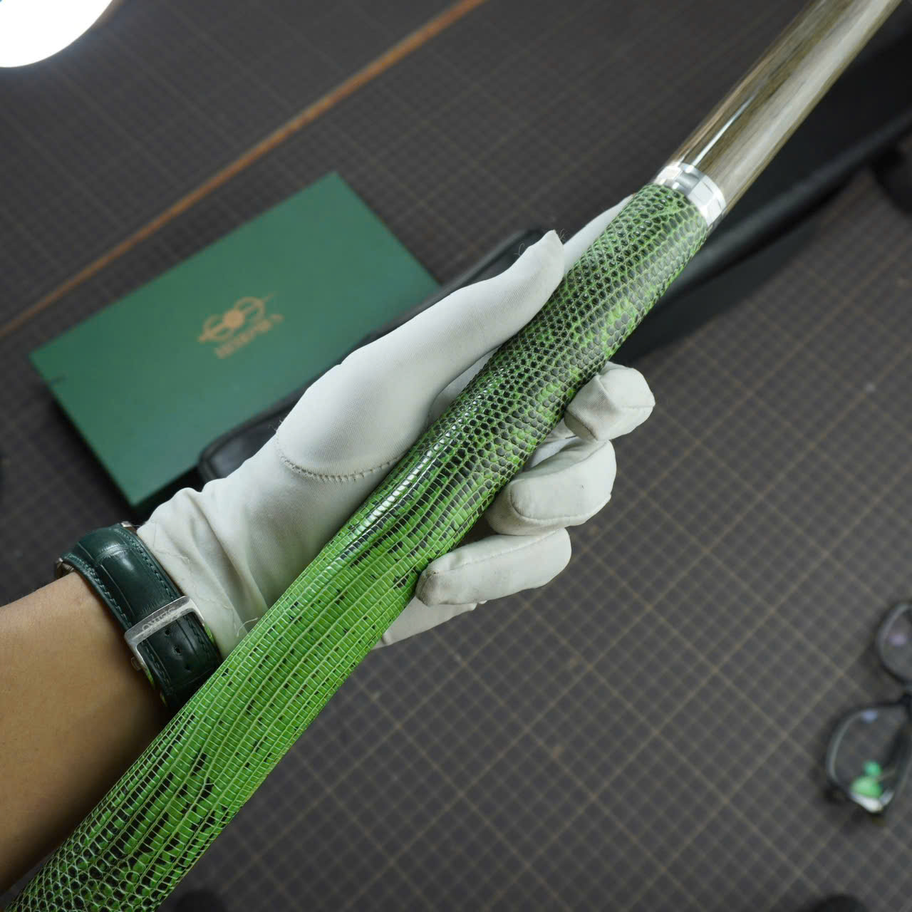 Bọc cơ da kỳ đà hoa xanh lá-đen cho chuôi Mit
